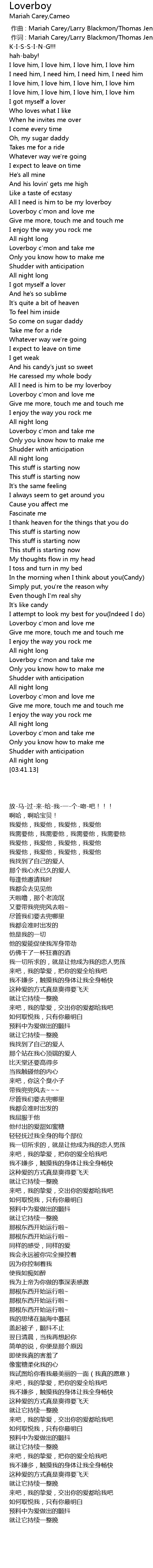 | [00:01.00] | 作词 : Mariah Carey/Larry Blackmon/Thomas Jenkins |