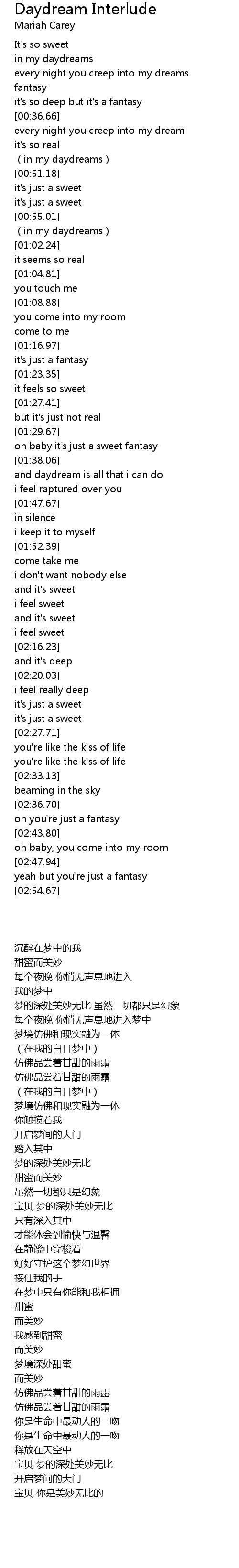| [01:31.46] | oh baby it' s just a sweet fantasy |