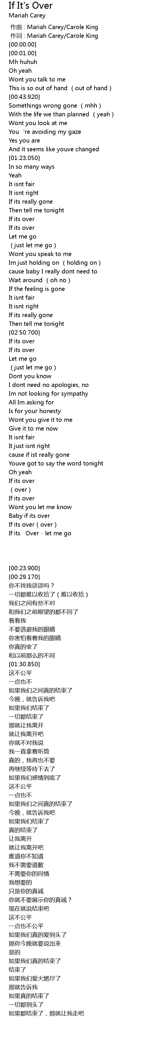 | 歌曲 | If It's Over |
