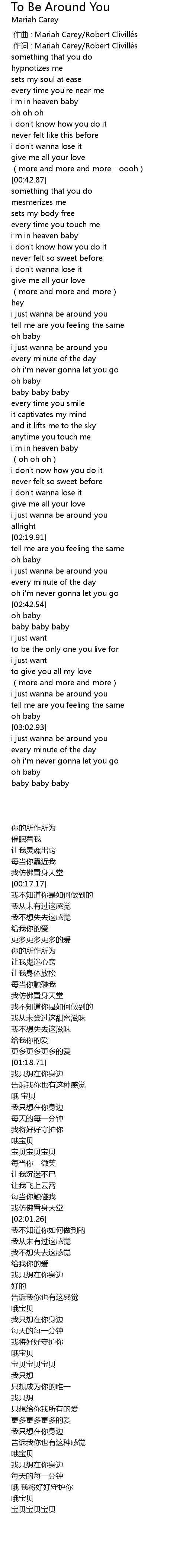 | [00:00.00] | zuo qu : Mariah Carey Robert Cliville s |