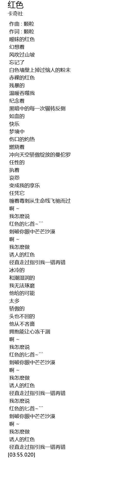 | [03:30.890] | hóng sè de bǐ shǒu |