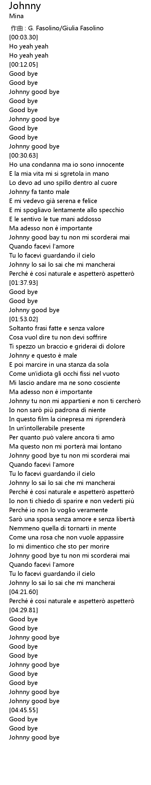| [03:58.05] | Johnny good bye tu non mi scorderai mai |