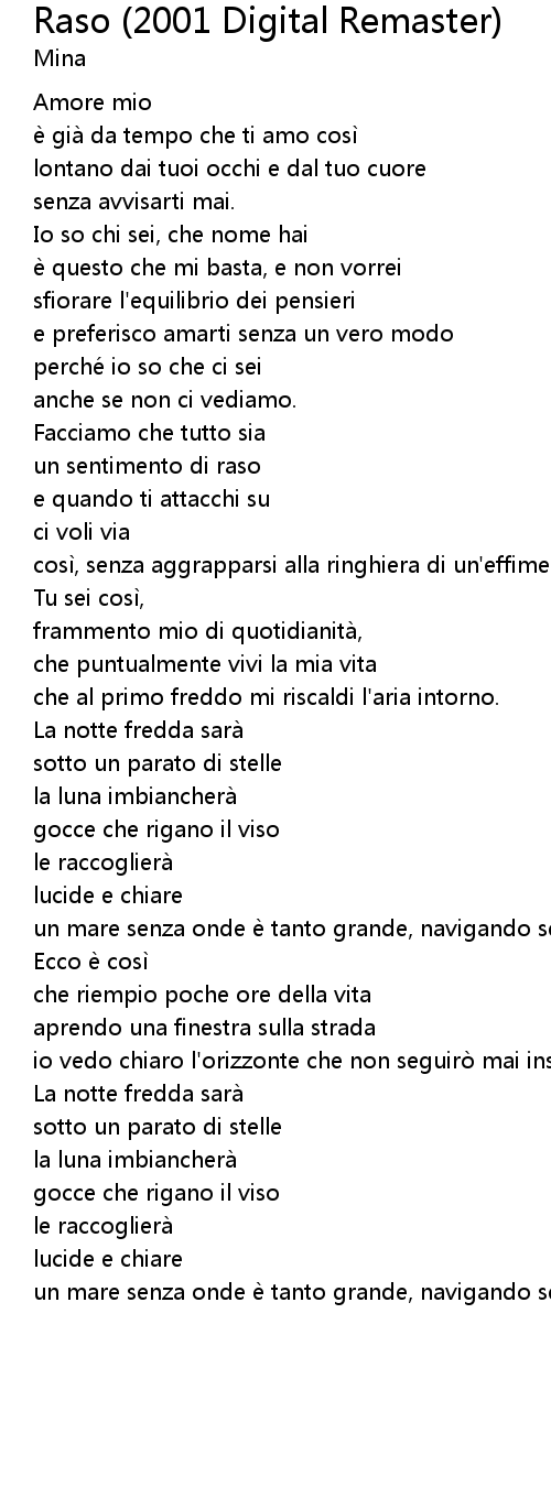 | io vedo chiaro l' orizzonte che non seguiro mai insieme a te. | |