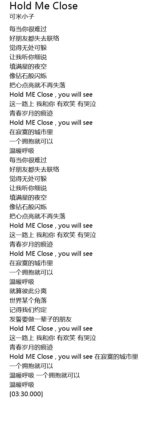 | [02:49.989] | Hold ME Close , you will see |