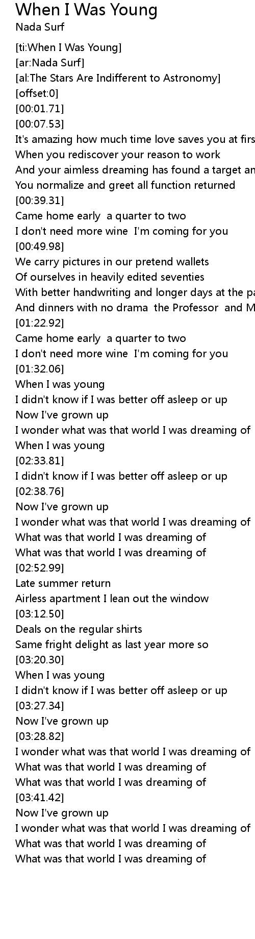 [ti:When I Was Young] |