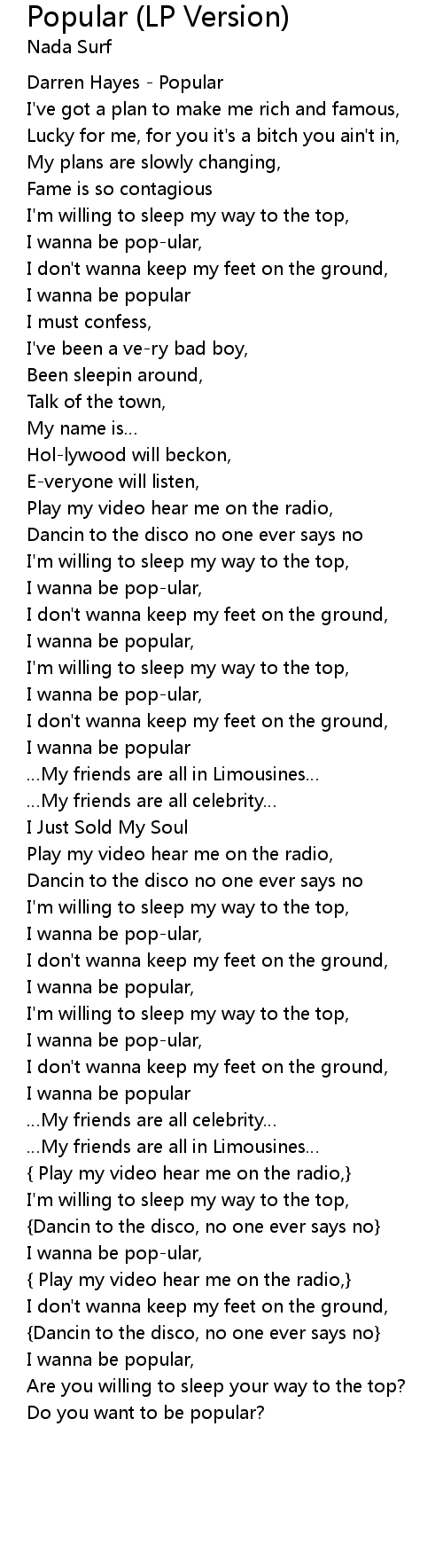 | [00:31.13] | I' m willing to sleep my way to the top, |