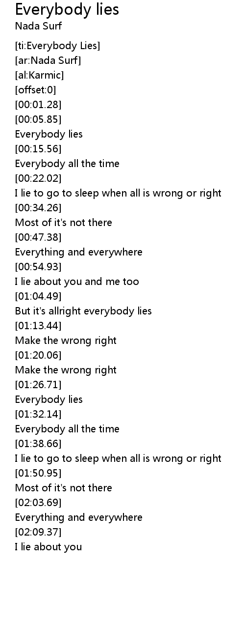 | [00:25.72] | I lie to go to sleep when all is wrong or right |