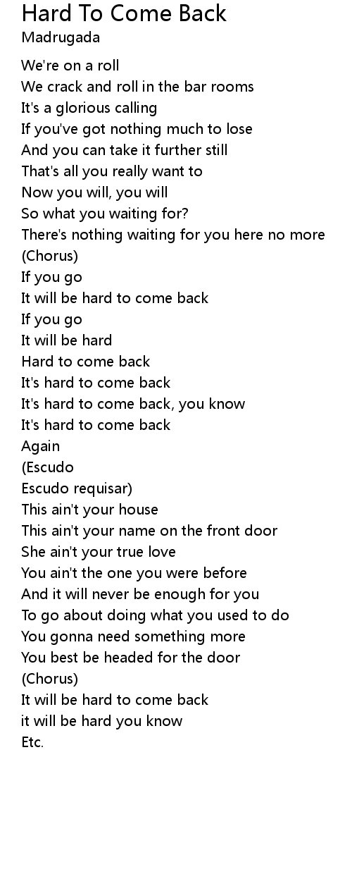 Hard To Come Back 歌词