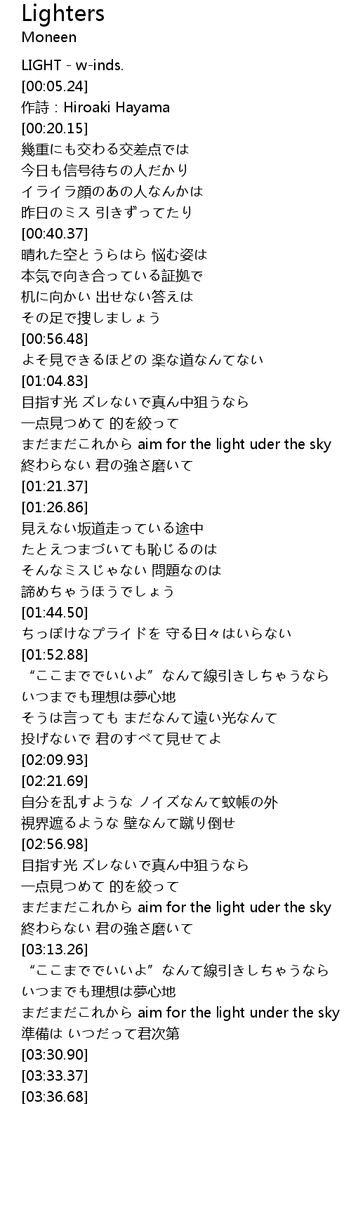 | [01:05.05] | 目指す光 ズレないで真ん中狙うなら |
