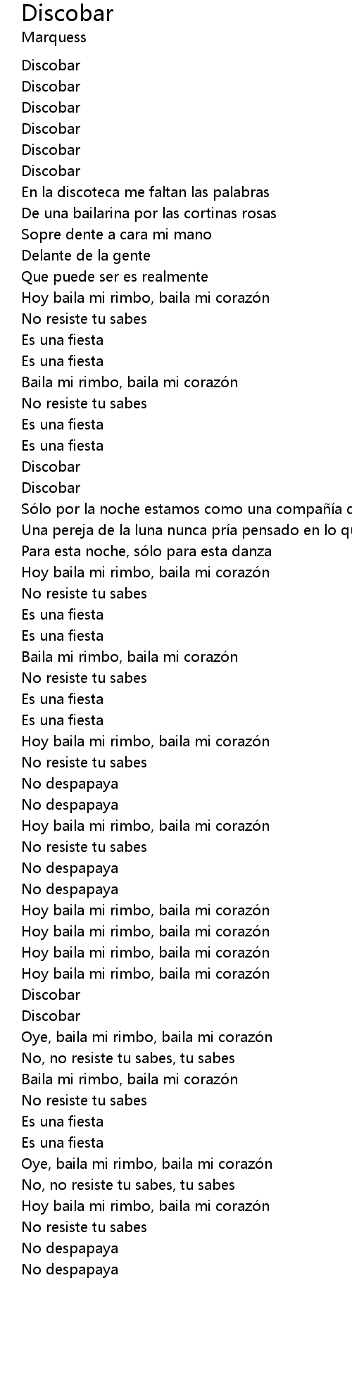 | Hoy baila mi rimbo, baila mi corazón | |