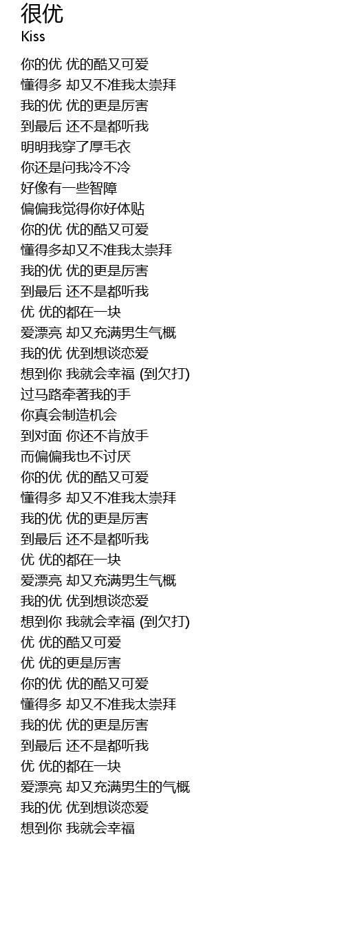 | [00:17.72] | 你的优 优的酷又可爱 |