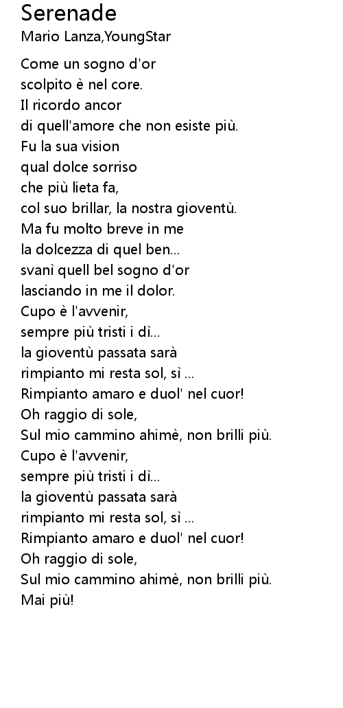 | [03:01.18] | Sul mio cammino ahime, non brilli piu. |
