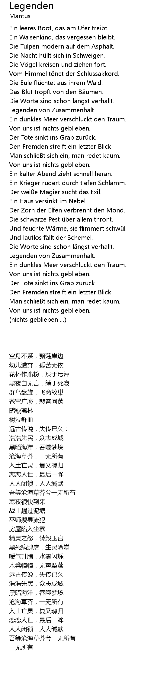| [00:39.91] | Die Nacht hüllt sich in Schweigen. |