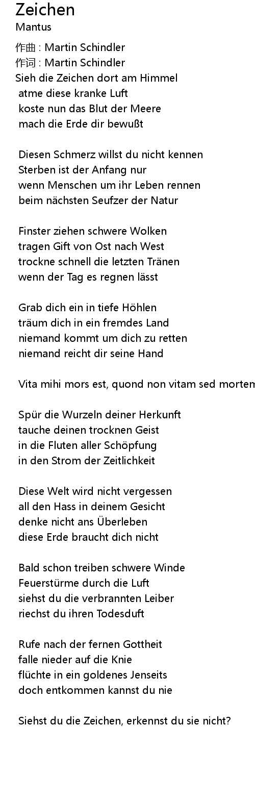 | Siehst du die Zeichen, erkennst du sie nicht? |