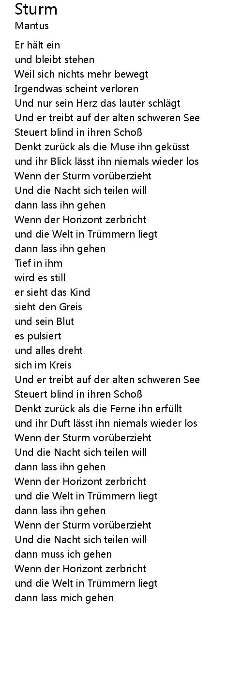| Und er treibt auf der alten schweren See | |