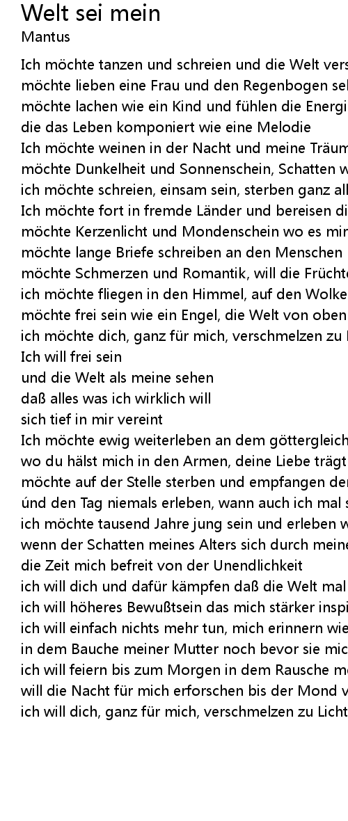 | Ich m chte fort in fremde L nder und bereisen diese Welt | |
