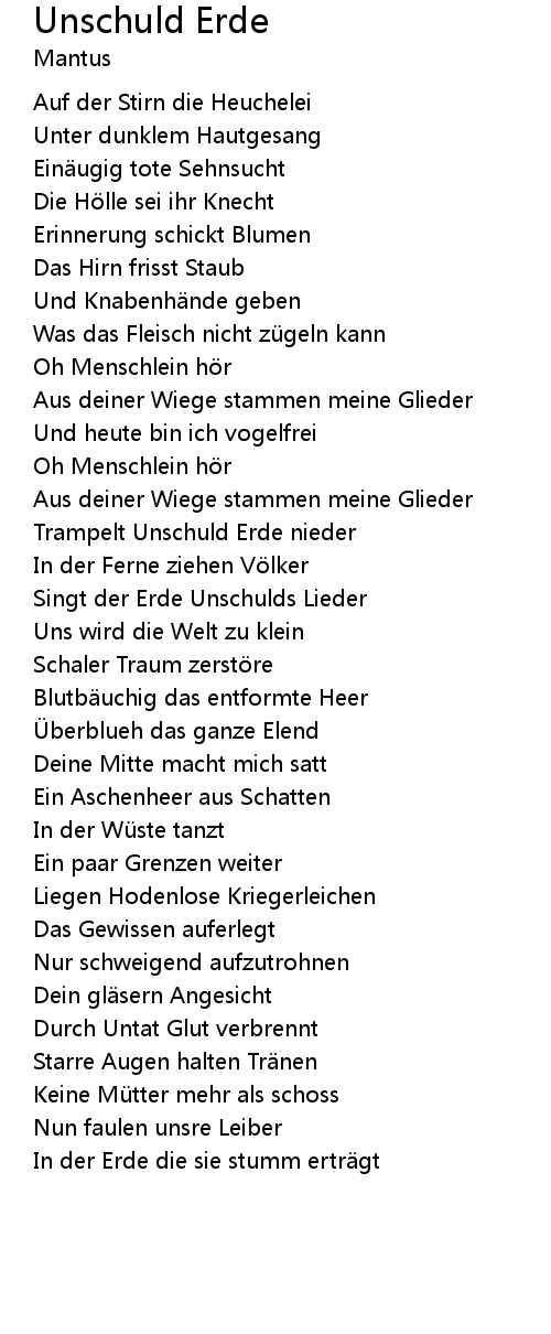 | 歌曲 | Unschuld Erde |