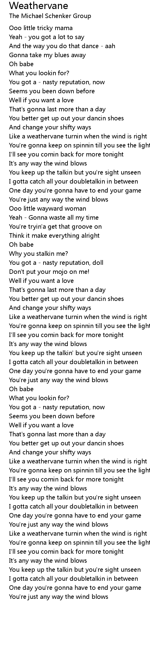 You're just any way the wind blows |