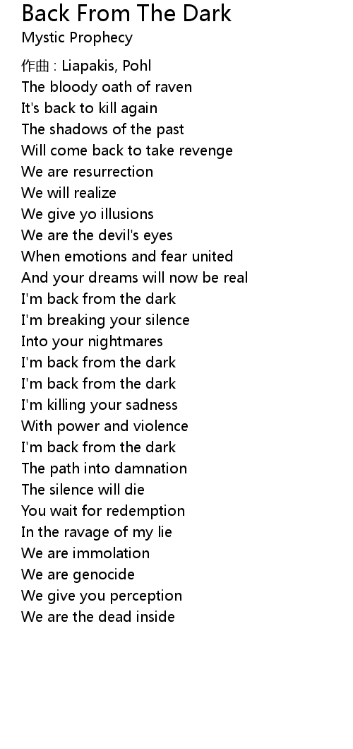 | I' m back from the dark | |