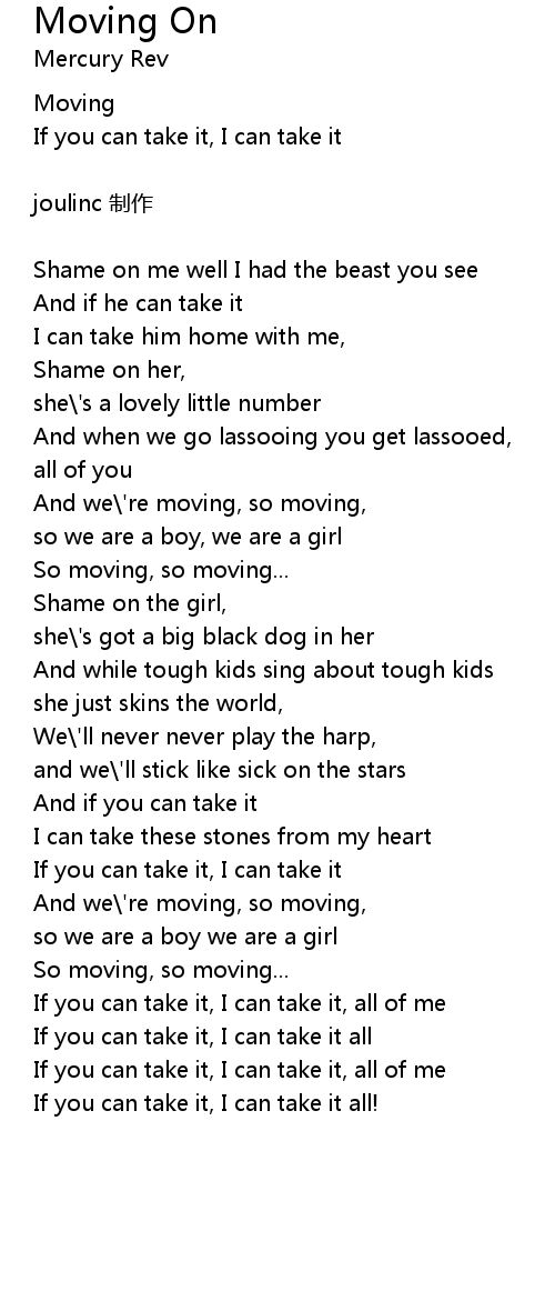 | 歌曲 | Moving On |