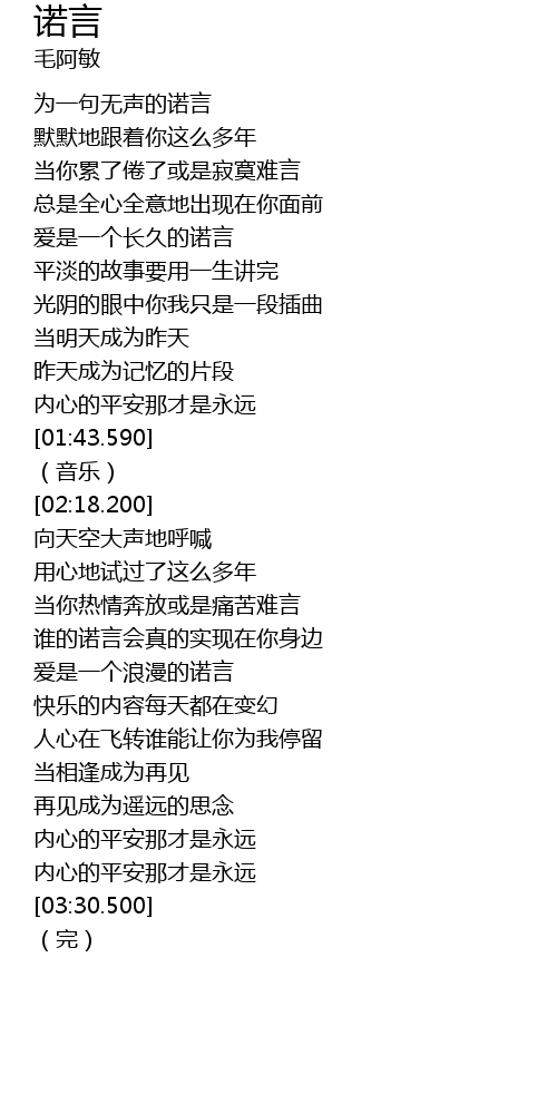 | [00:32.300] | wèi yī jù wú shēng de nuò yán |