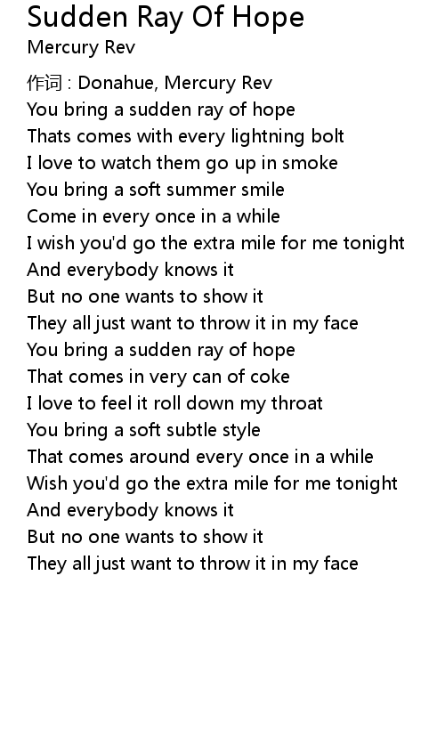 | You bring a sudden ray of hope | |