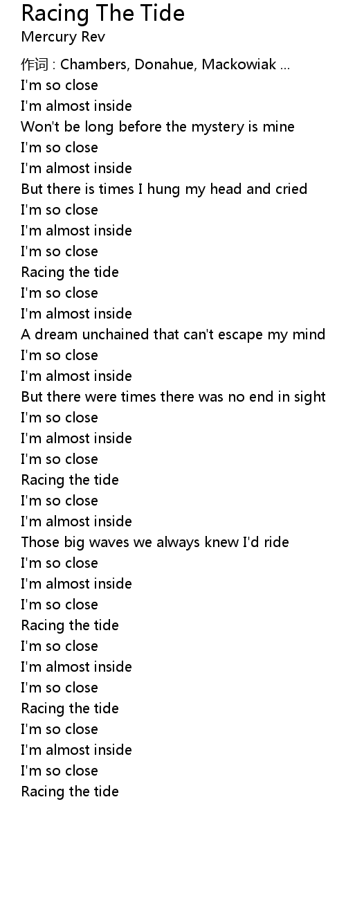 | 歌曲 | Racing The Tide |