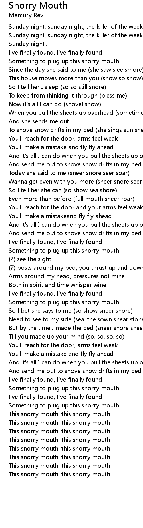 This snorry mouth, this snorry mouth |