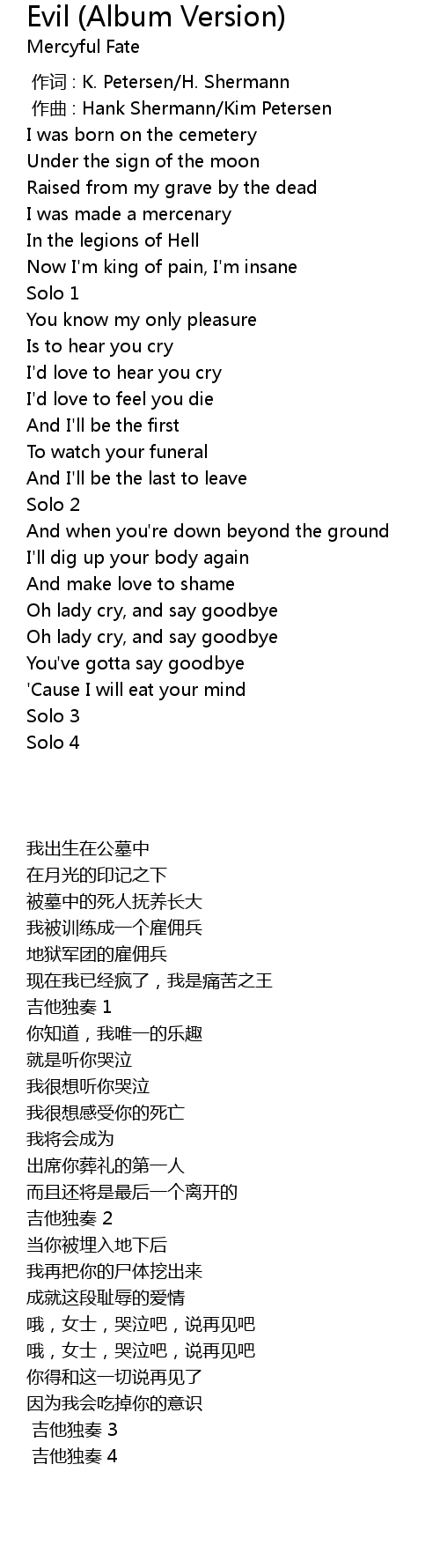 | 歌手 | Mercyful Fate |