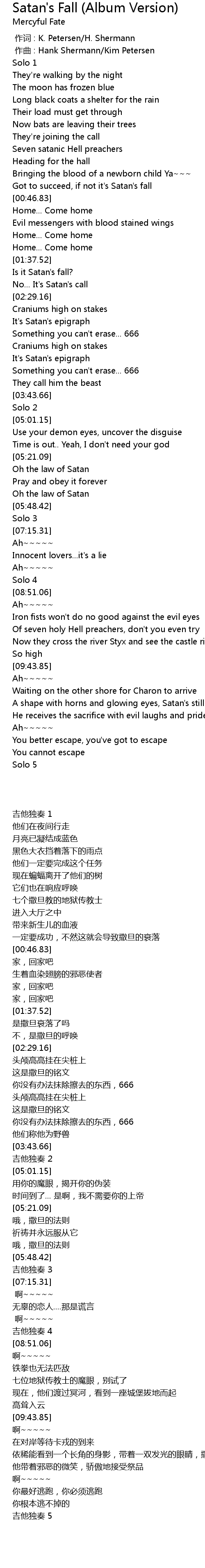 | 歌曲 | Satan's Fall (Album Version) |