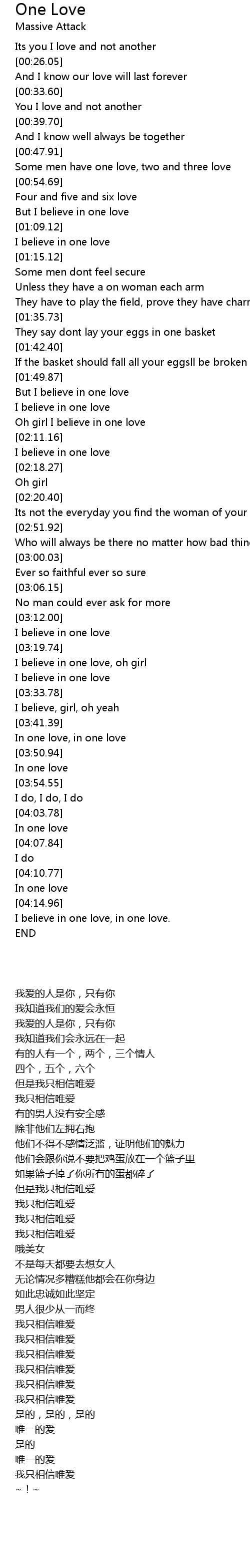 I believe in one love, oh girl |
