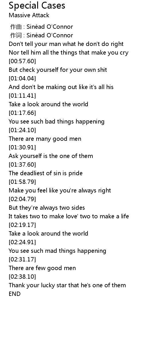 | [00:01.00] | 作词 : Sinéad O'Connor |