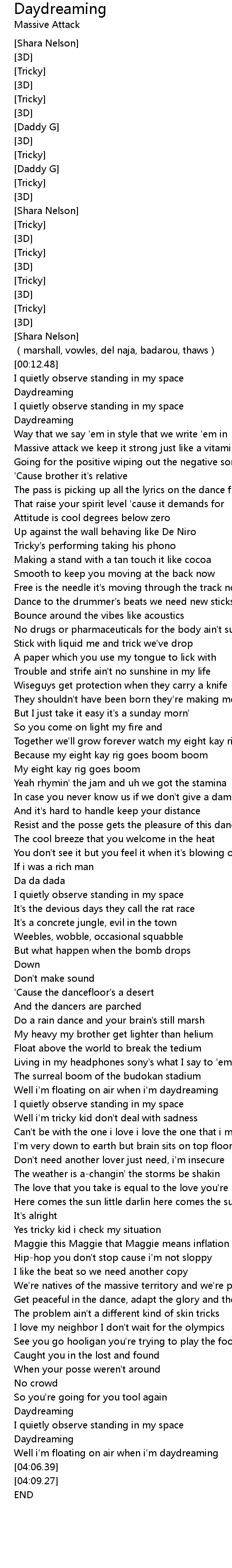 | [00:10.48] | marshall, vowles, del naja, badarou, thaws |