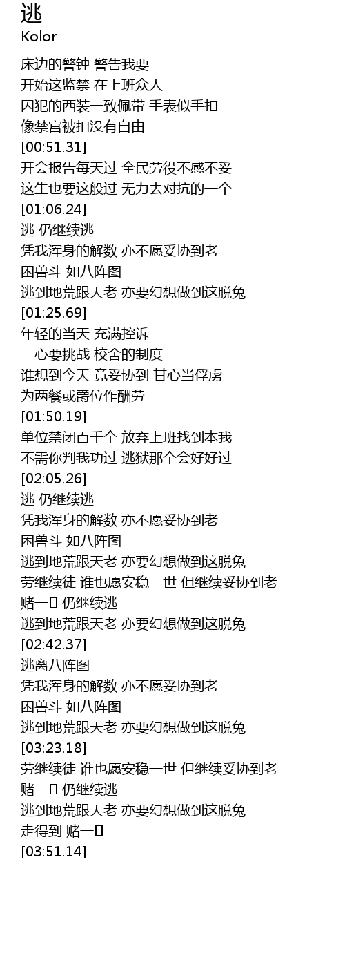 | [02:06.75] | 逃 仍继续逃 |
