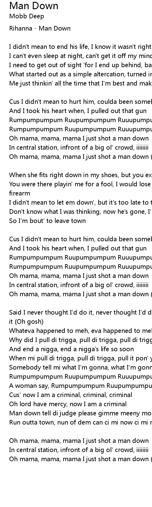 Rumpumpumpum Ruupumpumpum Ruuupumpumpumm mi say one man down |