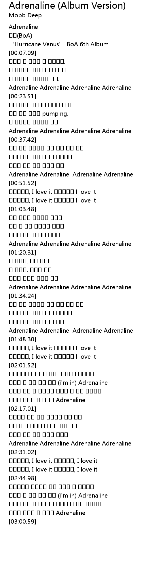 | [01:16.81] | Adrenaline Adrenaline Adrenaline Adrenaline |