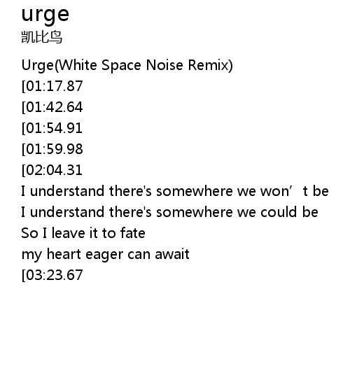 | [00:01.64] | Urge(White Space Noise Remix) |