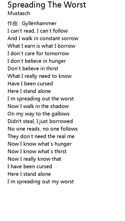 | 歌曲 | Spreading The Worst |