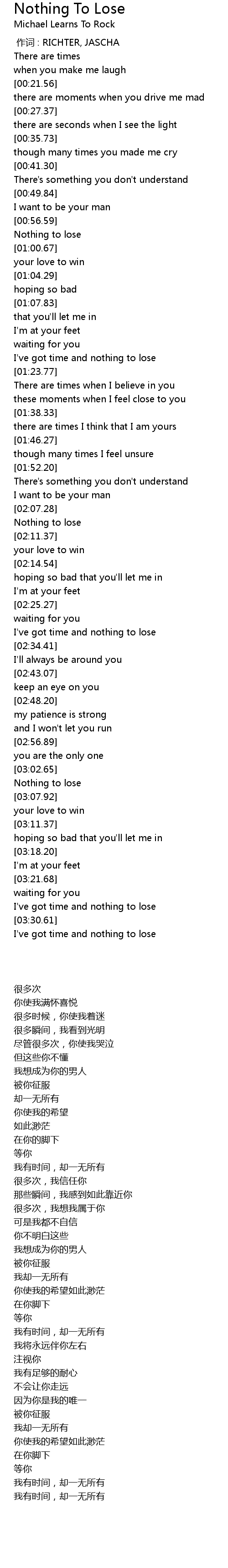 | [03:04.83] | Nothing to lose |