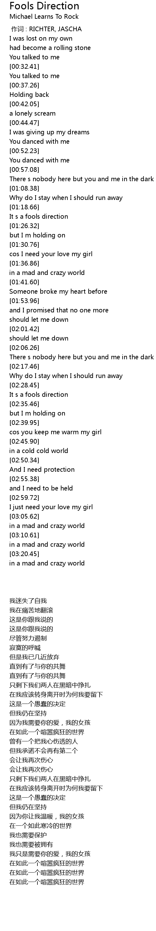 | [03:17.17] | in a mad and crazy world |