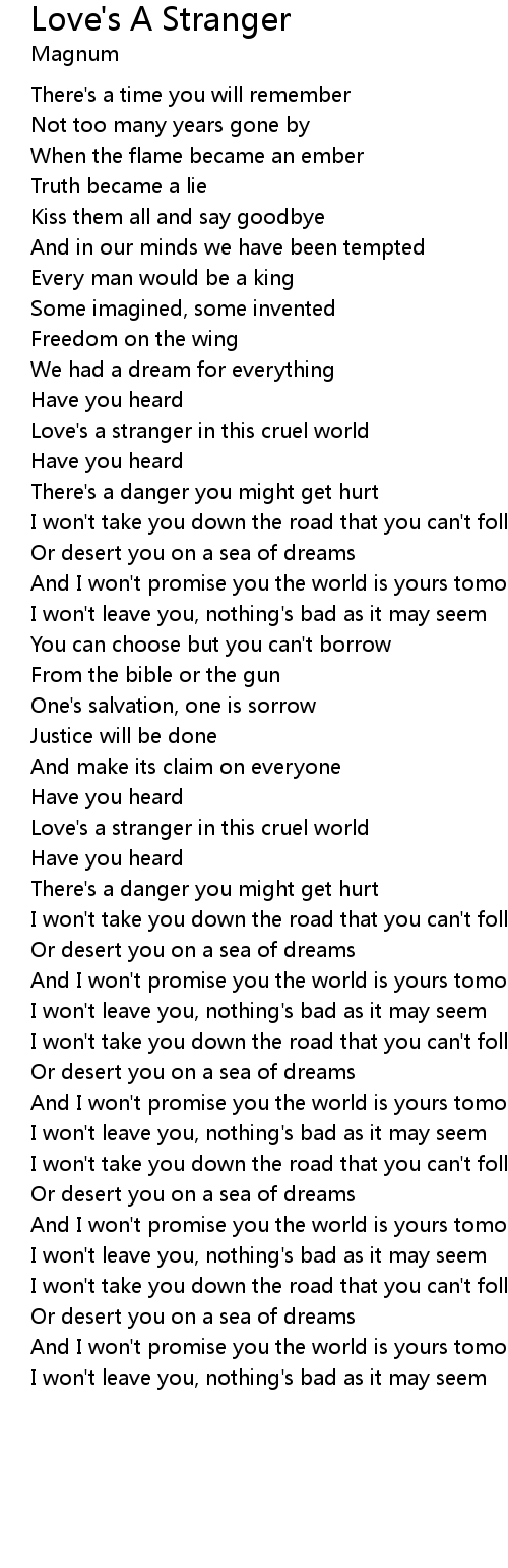 | Love's a stranger in this cruel world | |