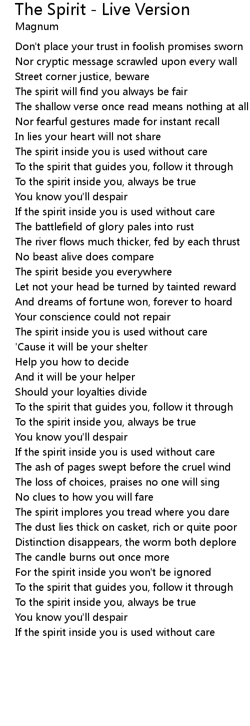 The spirit inside you is used without care |