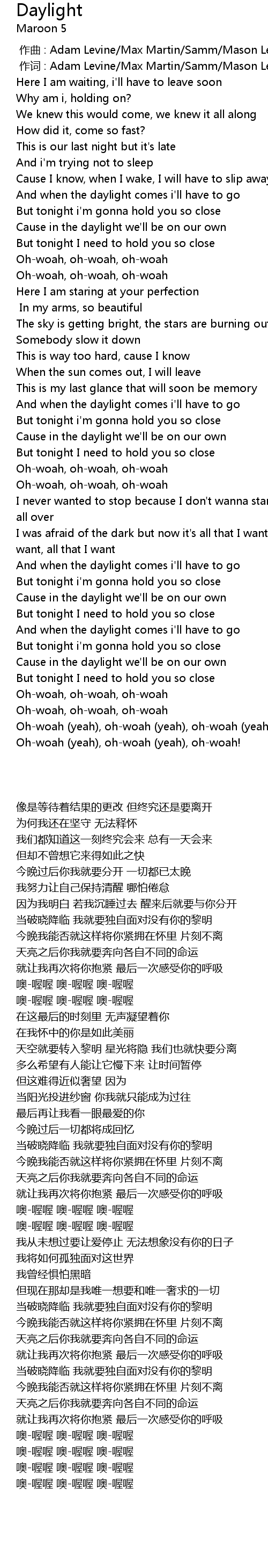 | [00:00.226] | 作词 : Adam Levine/Max Martin/Samm/Mason Levy |