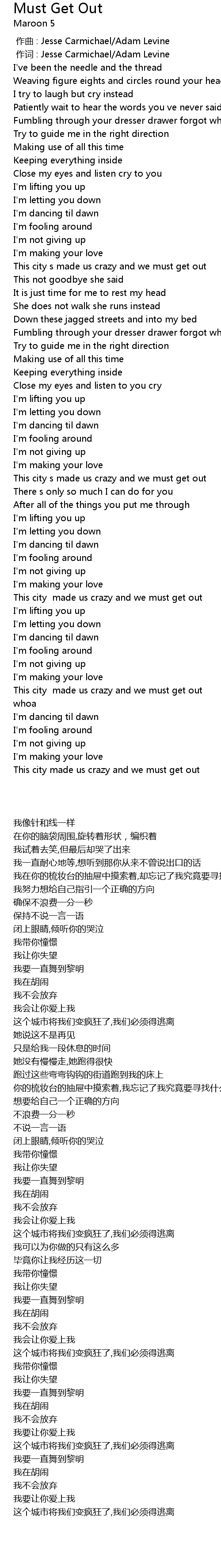 | [00:01.00] | 作词 : Jesse Carmichael/Adam Levine |