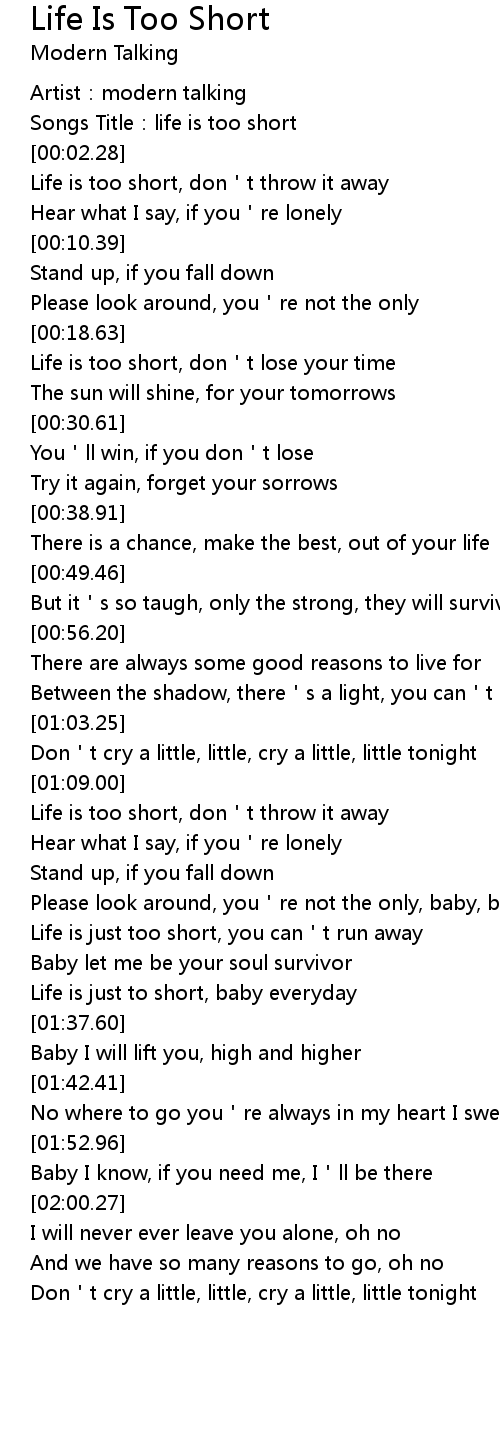 | [00:42.97] | There is a chance, make the best, out of your life |