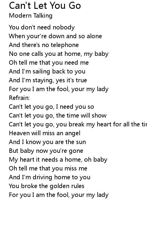 Can't let you go, I need you so |