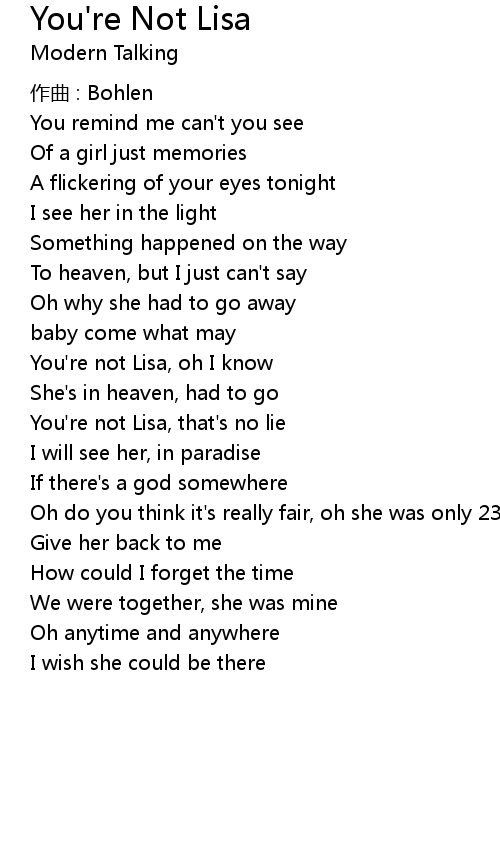 | You're not Lisa, oh I know | |