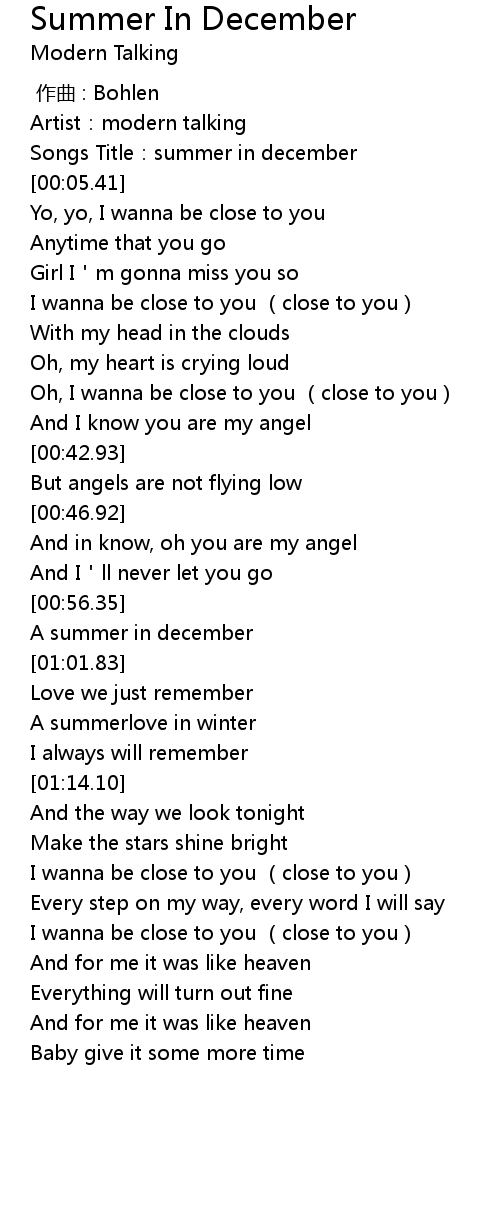 | [00:34.36] | Oh, I wanna be close to you (close to you) |