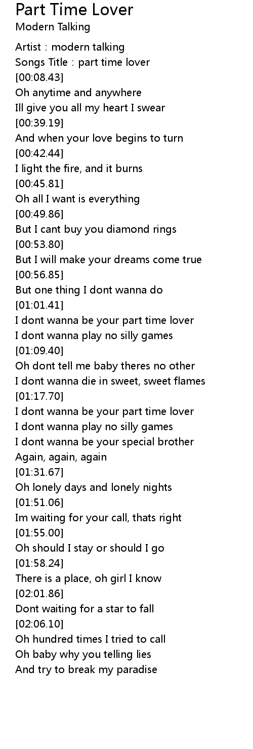 | [01:10.33] | Oh dont tell me baby theres no other |