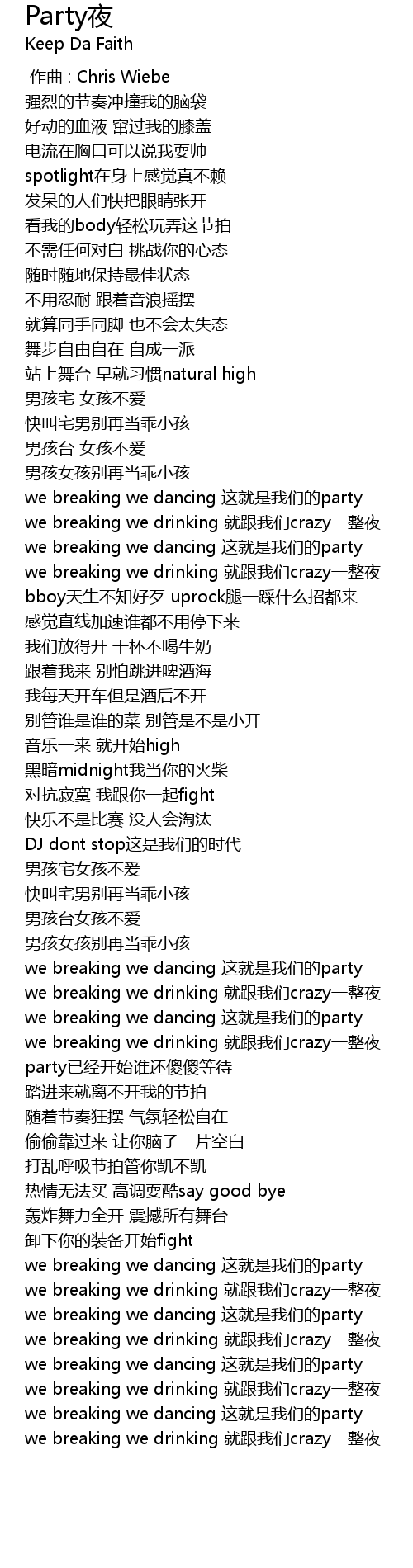 | [00:41.000] | we breaking we dancing zhe jiu shi wo men de party |